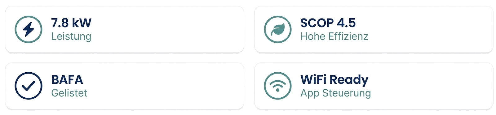 One system for everything: Reliable heating in winter, pleasant cooling in summer, and hot water all year round. Completely replaces your old combustion system.